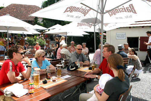 So machte sich das Grüppchen auf den etwas verkürzten Weg zum Schloss Hohenentringen. Hier traf die hungrigen und durstigen Wanderer auf den Nachwuchs Amelie mit Mama Suzi Manojlovic und Papa Ralph Köster.